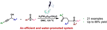 Phosphotungstic acid-catalyzed phosphinylation of secondary propargyl alcohols to γ-ketophosphine oxides in DMC was developed and promoted by trace water.